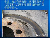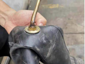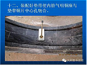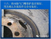 ?14、將外胎與鋼圈組合好,再次對內(nèi)胎的氣門嘴桿調(diào)整至鋼圈氣嘴槽中心位置。15、充氣好的輪胎,用肥皂水試氣門芯和氣門嘴從輪輞伸出的缺口查看是否漏氣。?16、將內(nèi)胎氣門嘴保護(hù)帽安裝好,再次確認(rèn)各組組件全部安裝好。